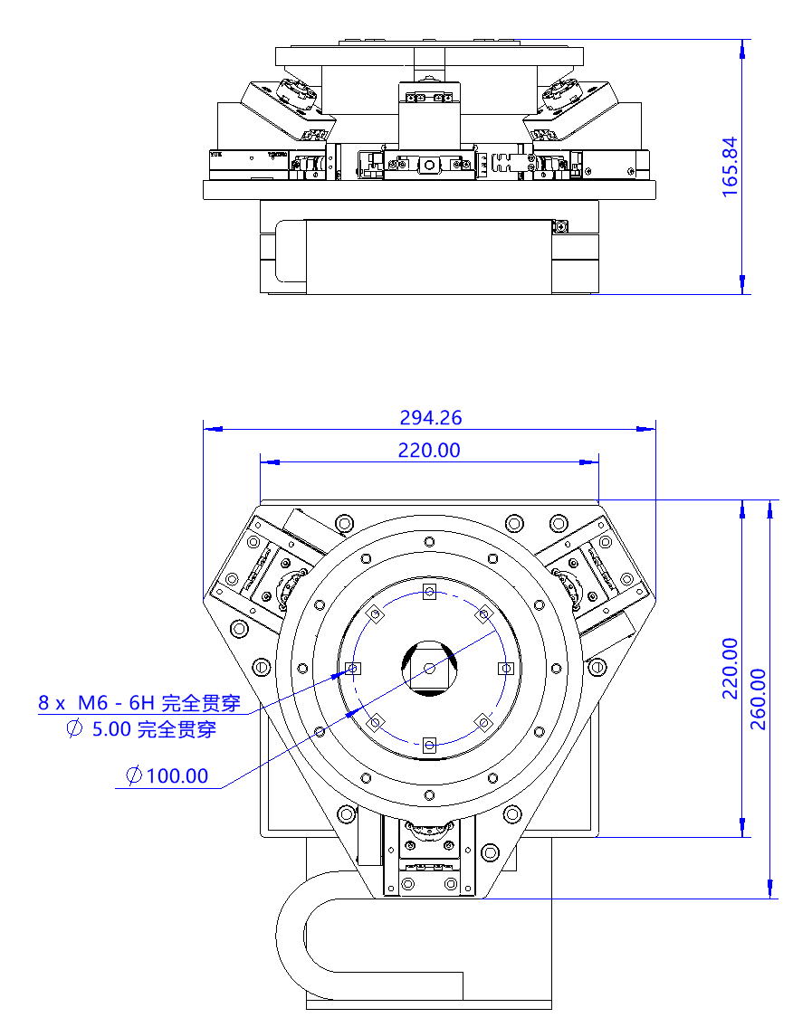 整体结构XY采用直接电机驱动,三轴调节使用步进电机驱动,旋转轴使用力矩电机驱动,配合高精度光栅反馈使用TRIPOD结构。 可在紧凑而坚固的平台中提供一致且可靠的运动精度 具有超精细的定位分辨率、充足的有效载荷能力 成为在可用空间有限时需要复杂多自由度运动的应用的理想选择。适用于半导体检测圆晶的调平。